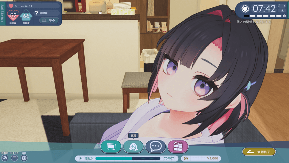 本作はヒロインの葵とシェアハウスで同棲生活を送るシミュレーション形式のゲームとなっています。主人公と葵は会社で働いていますが、リモートでの仕事となっているので1日の大半は自宅で過ごす事になります。